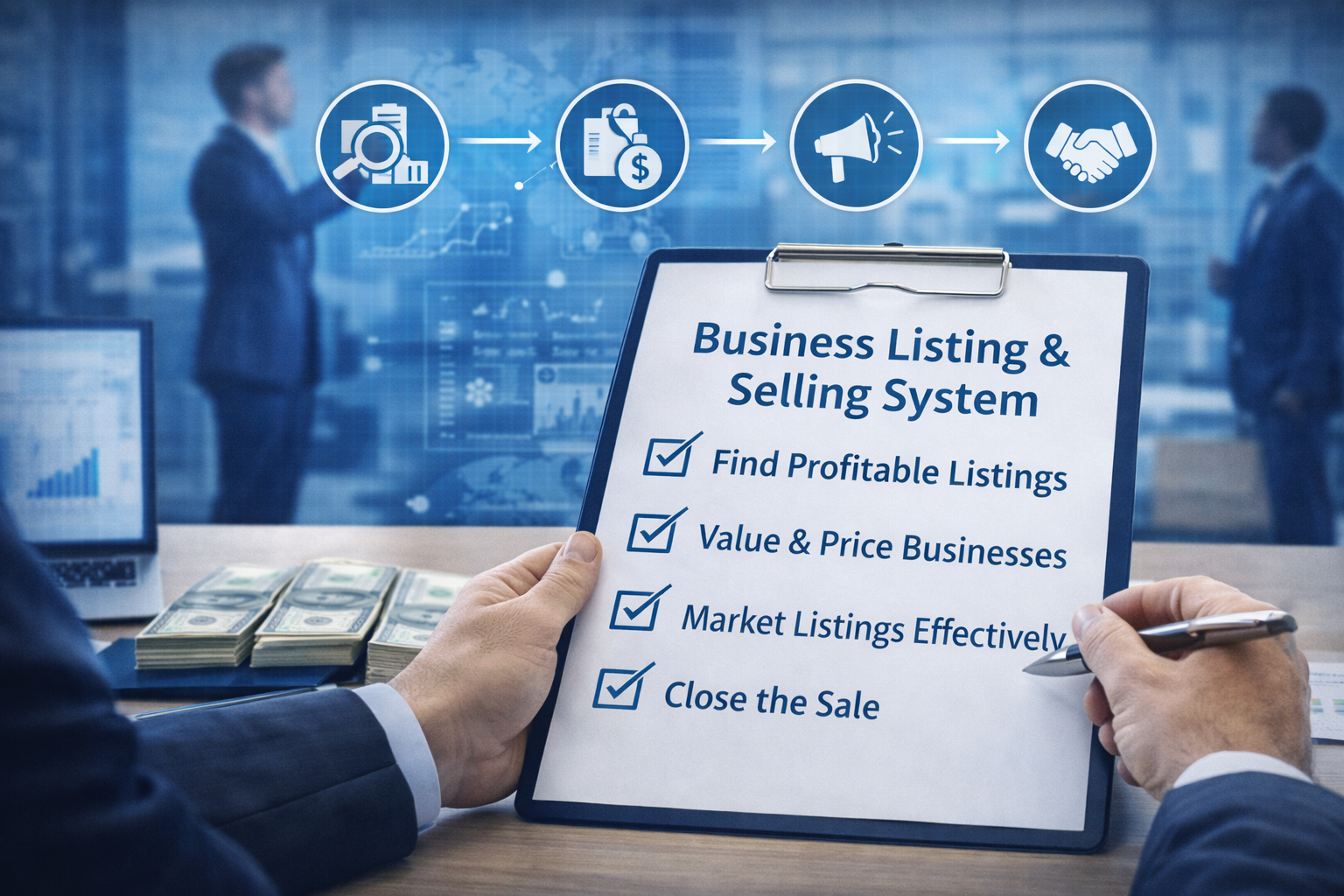 Siga um processo claro e reutilizável para conseguir, precificar, divulgar e vender negócios com confiança — mesmo que você nunca tenha feito uma negociação de venda de negócio antes.